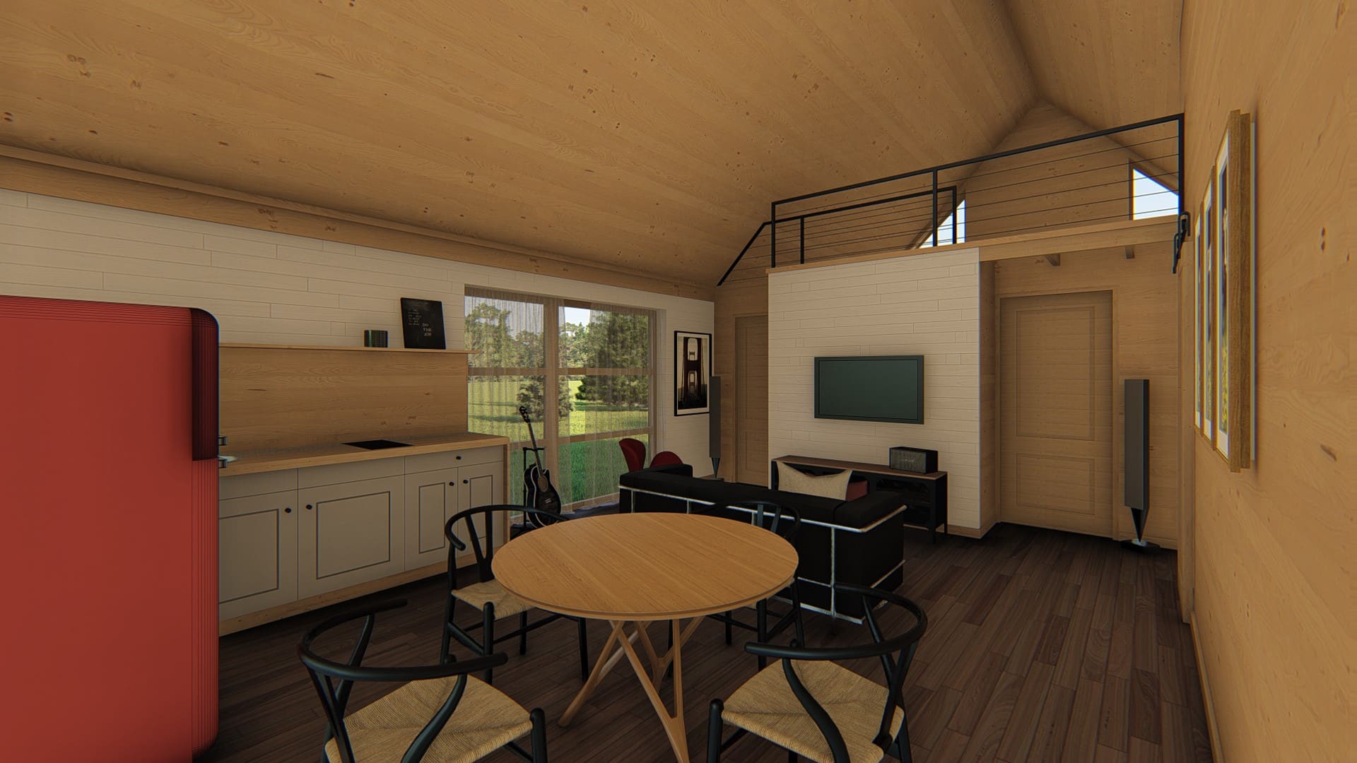 Az igazi otthon érzetét a meleg és energiatakarékos belső tér teremti meg, a jól szigetelt szerkezetnek köszönhetően. A külső és belső felületek fa burkolatot kapnak, így még bensőségesebbé válik a tér.