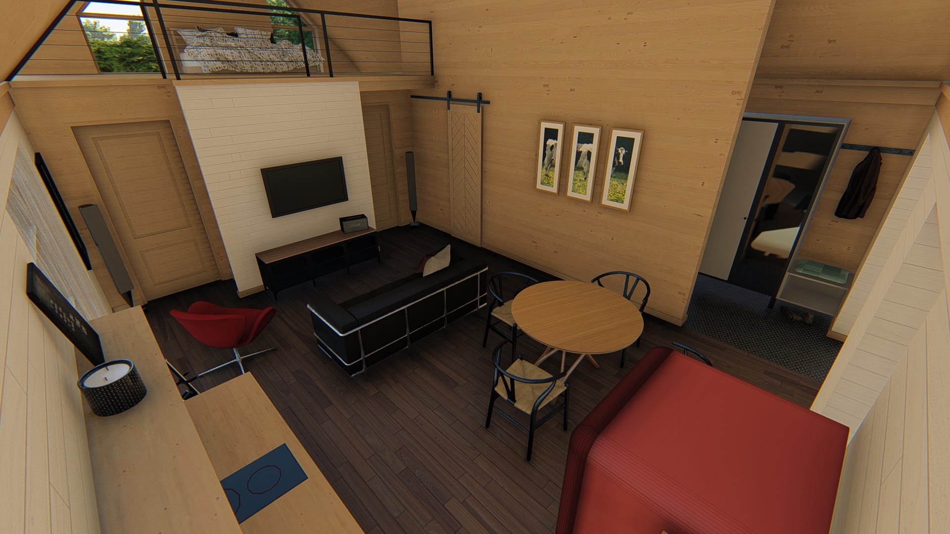 A Balaton Barnhouse berendezése magában foglal egy tágas nappalit amerikai konyhával, fürdőszobát, előszobát, technikai helyiséget, teraszt, és igény szerint 1, 2 vagy 3 hálószobát + galériát.