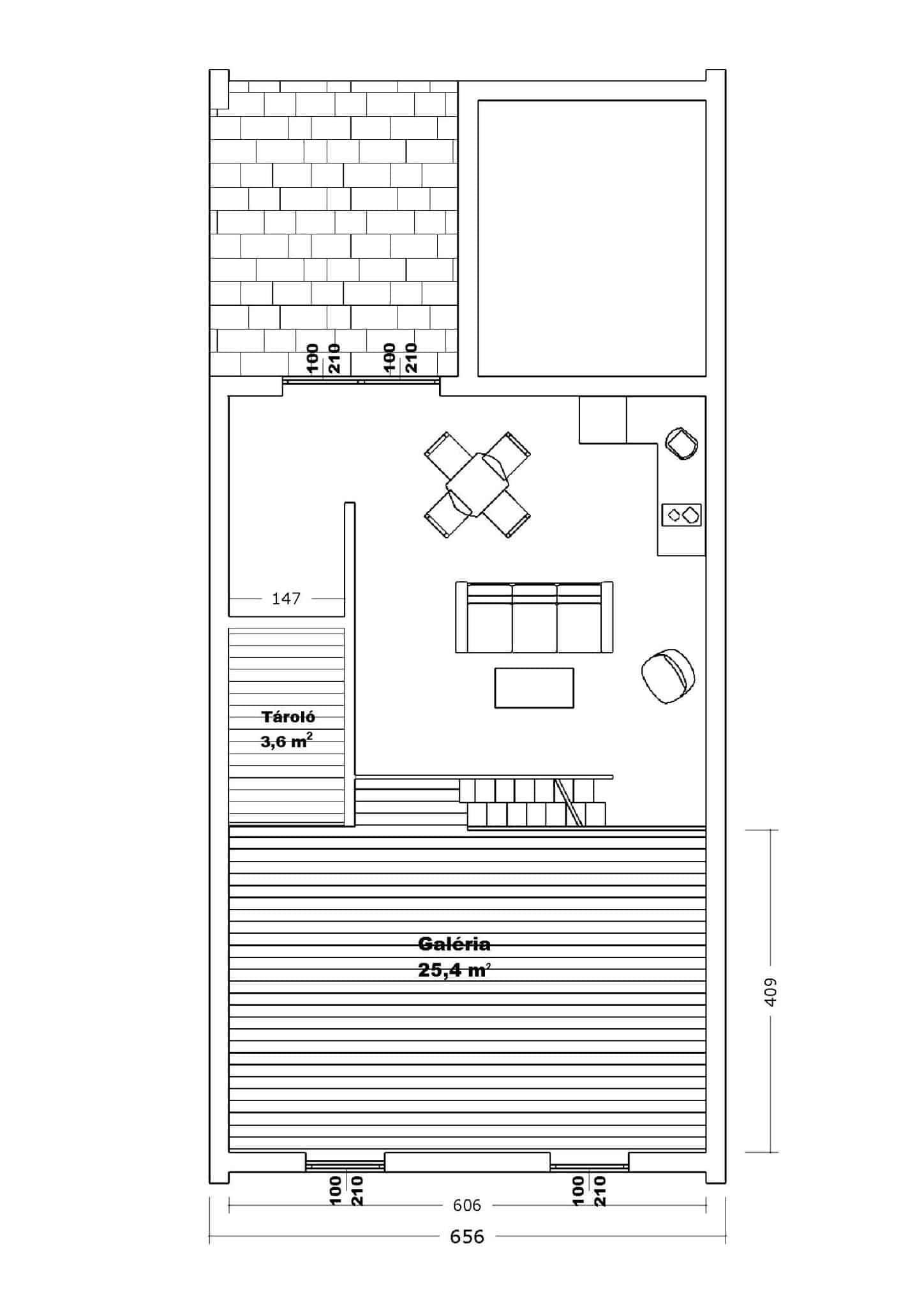 A csűr forma karakteres megjelenést kölcsönöz és lehetővé teszi egy sokoldalú és kényelmes galéria kialakítását.